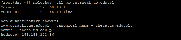 DNS 8ang. Domain Name System jest protokołem, który pozwala na tłumaczenie adresów IP na nazwy domen. Używanie samych adresów fizycznych nie jest często właściwe. I jak dla powyższego przykładu domena www.utracki.us.edu.pl ma adres IP: 155.158.102.56, tak należy pamiętać, że pod tym adresem może znajdować się wiele różnych adresów domenowych i wpisanie adresu IP w pole: adres przeglądarki może mieć nieoczekiwane działanie.