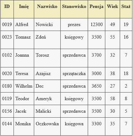 - wszystkie osoby mające więcej jak 10 lat stażu w firmie zarabiające poniżej 5000zł