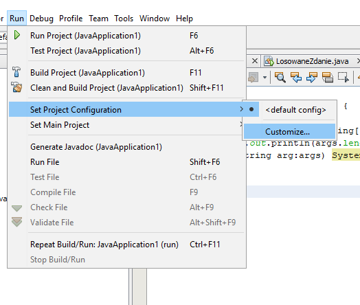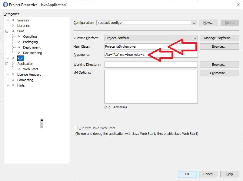 Pracując jednakże w środowisku programistycznym NetBeans musimy zasymulować taki sposób uruchamiania w konfiguracji.