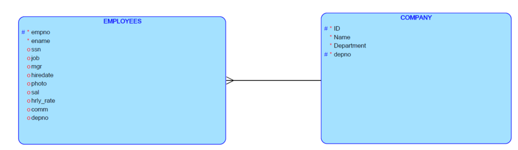 | empno | ename | ssn | job | mgr | hiredate | photo | sal | hrly_rate | comm | deptno |