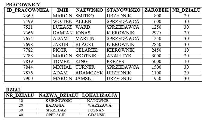SELECT NR_DZIALU, COUNT(NR_DZIALU) "LICZEBNOSC" FROM PRACOWNICY GROUP BY NR_DZIALU;