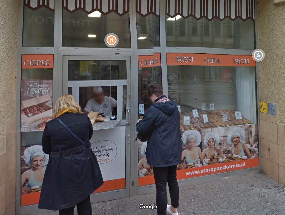W powyższym przykładzie algorytm wykrył sprzedawcę pączków w oknie, oraz osobę zamierzającą zakupić słodkości i rozmył ich twarze, ale także rozmył jedną z twarzy widocznych na reklamie. W pozostałych przypadkach prawidłowo pozostawił je w pełni widoczne.