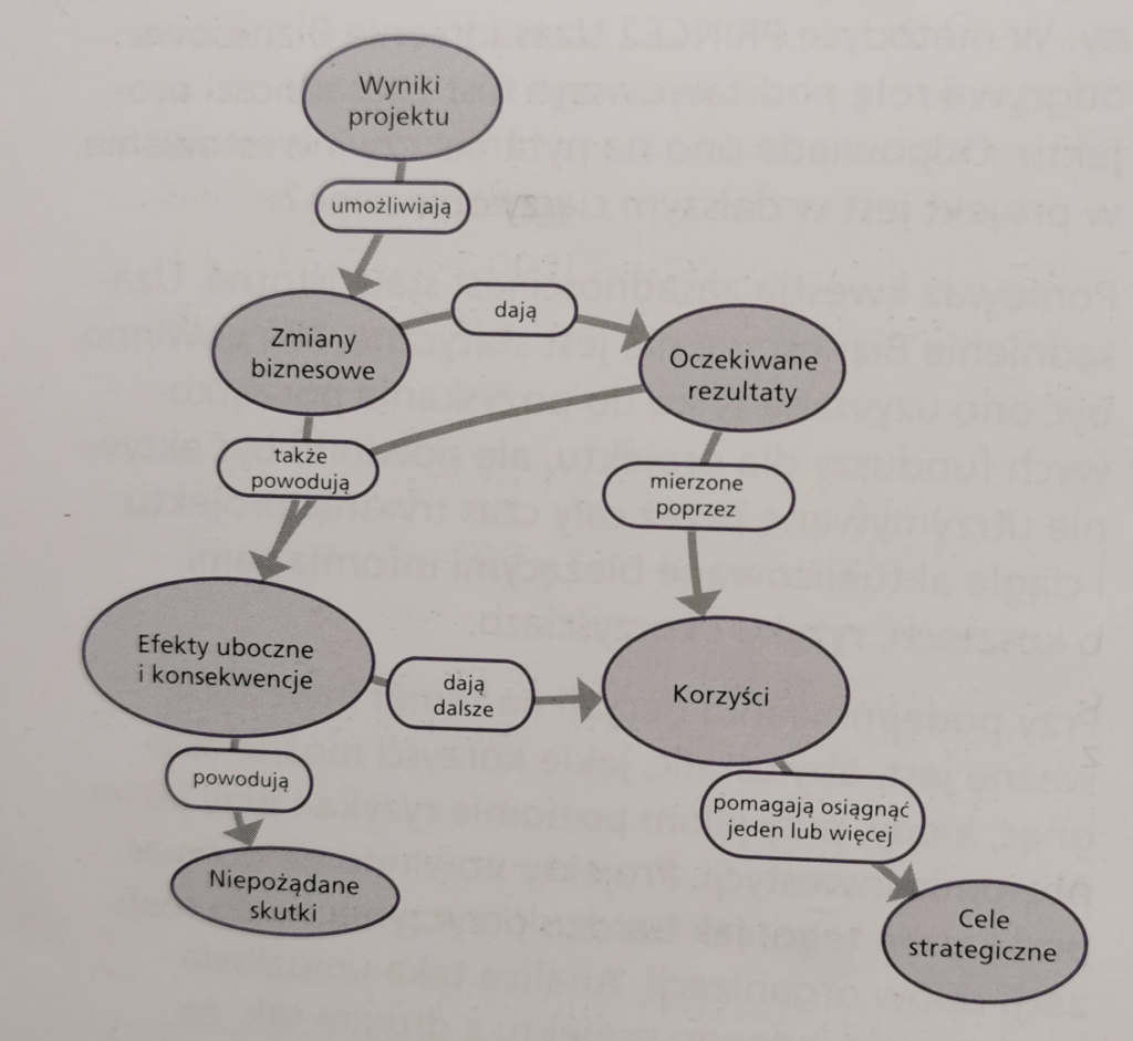 Powiązanie relacji wyniku, rezultatu i korzyści.